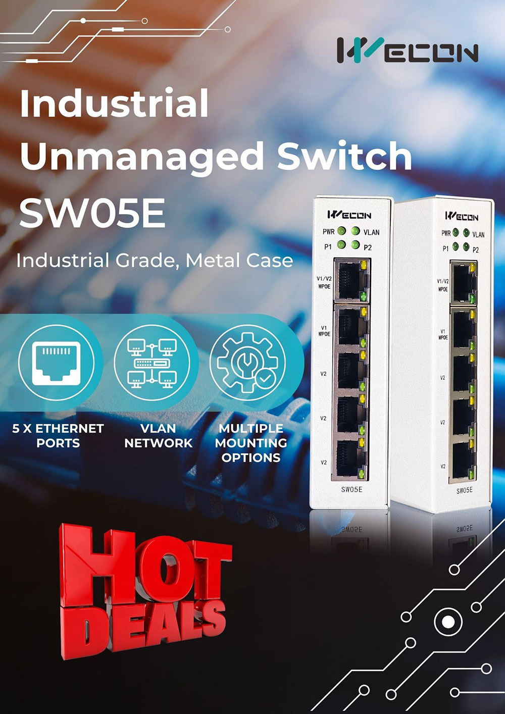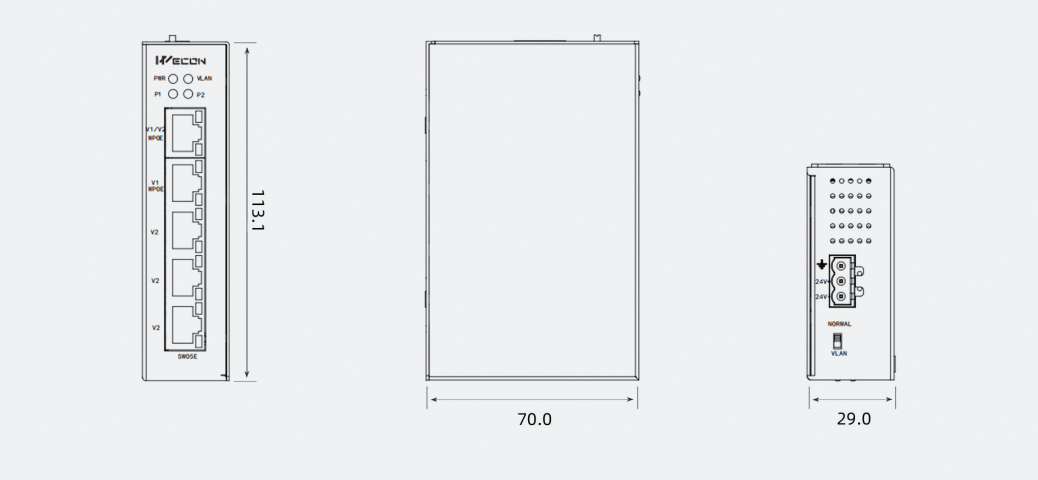 PWR, VLAN, P1, P2 |